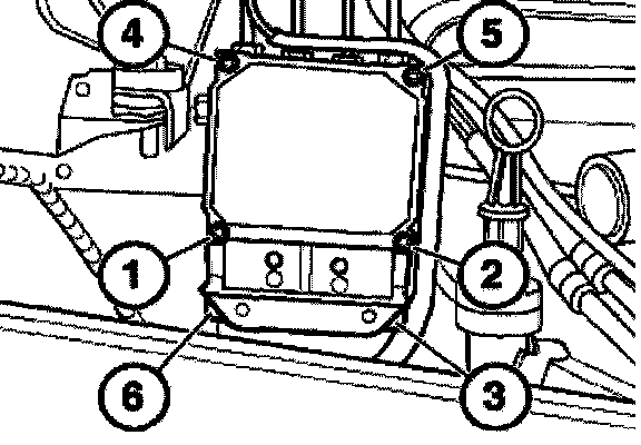 Press control module onto hydraulic unit and screw in screws (1+2) evenly (do not tighten down) until control module is resting evenly on hydraulic unit. Insert screws (1-6), do not tighten down yet.