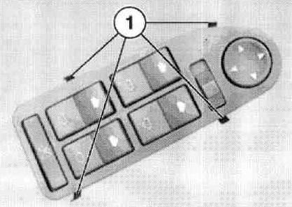 Insert a feeler gauge at arrow positions (1 to 4) between door trim and toggle switch, press down retaining clips and raise toggle switches in prevailing positions until the retaining clips pass the door trim panel.