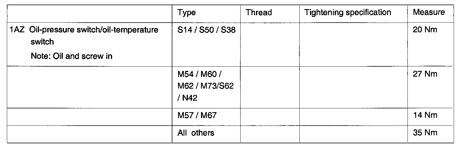 Tightening torque, 12 61 1AZ.