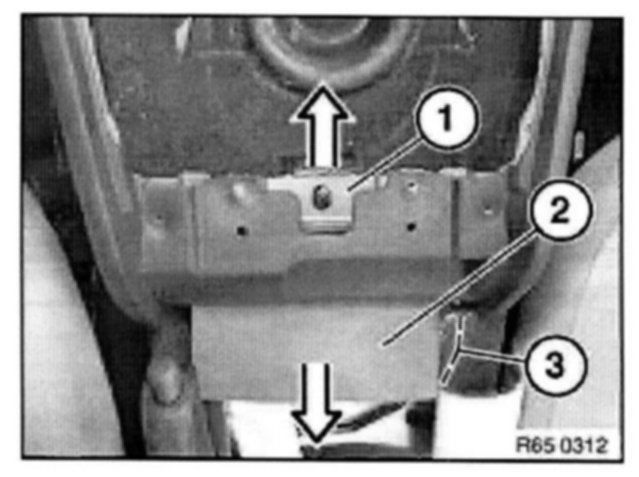 Raise module for passenger compartment protection (2) on right and pull in direction of arrow out of guide (3).