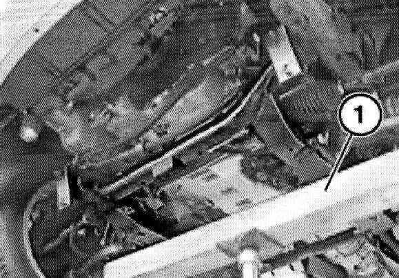 Note: The supports (1) of special tool 00 0 208 must rest on the bolt connection of both side walls.