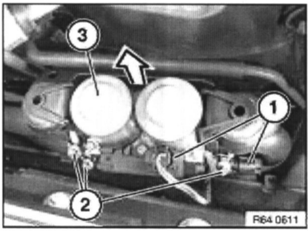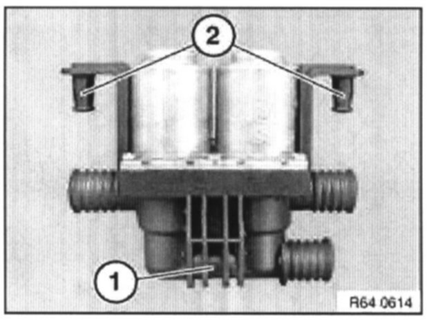 Pull water valve for heater (3) in direction of arrow out of rubber mounts.
