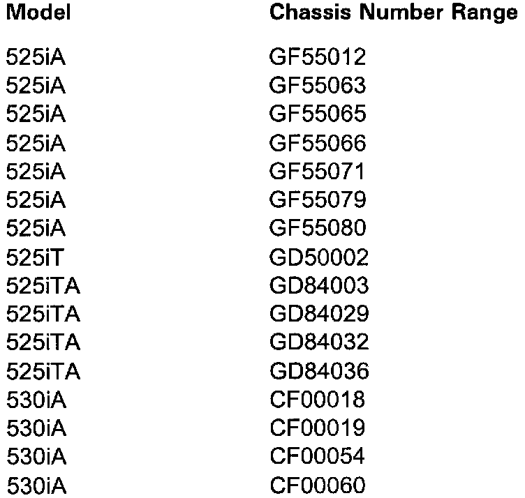 This Service Action involves E39 vehicles (525iA, 525iT, 525iTA, 530iA, 540i, and 540iA) with C53 BMW Business Radio (with cassette drive) and without DSP audio system, which were produced from August 28th, up to September 18th of 2000.