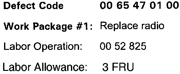 On all affected vehicles replace the radio. For the replacement procedure, please refer to the Repair Instruction RA 65 11 030 (which can be found in BMW technical Information System - TIS).