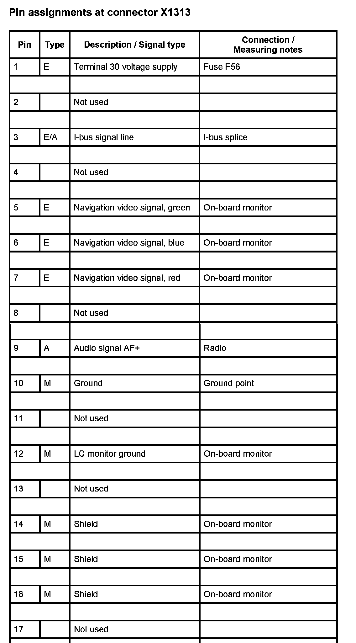 A112 Navigation Control Module (As of 2000_09) (Pin Assignments)