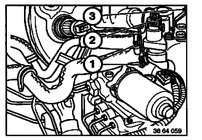 Unfasten hoses (1), disconnect plug-in connection (2), unfasten screw (3) and remove water valve by lifting in upwards direction.