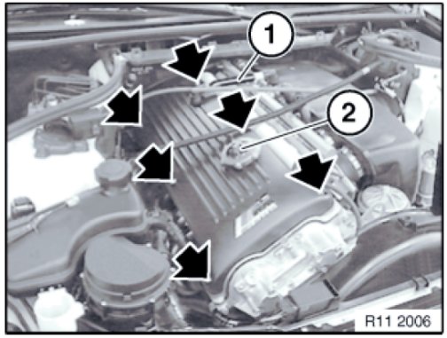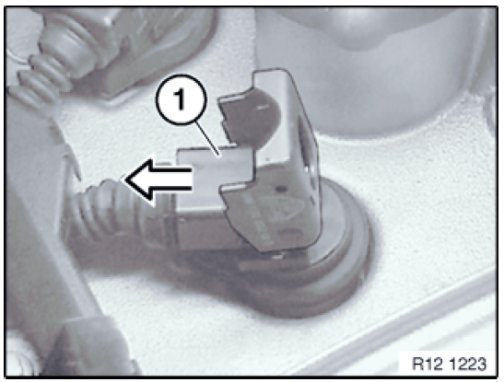 - The lug on the cylinder head (2) must be inserted in the opening on the underside (1) of the rubber seal.