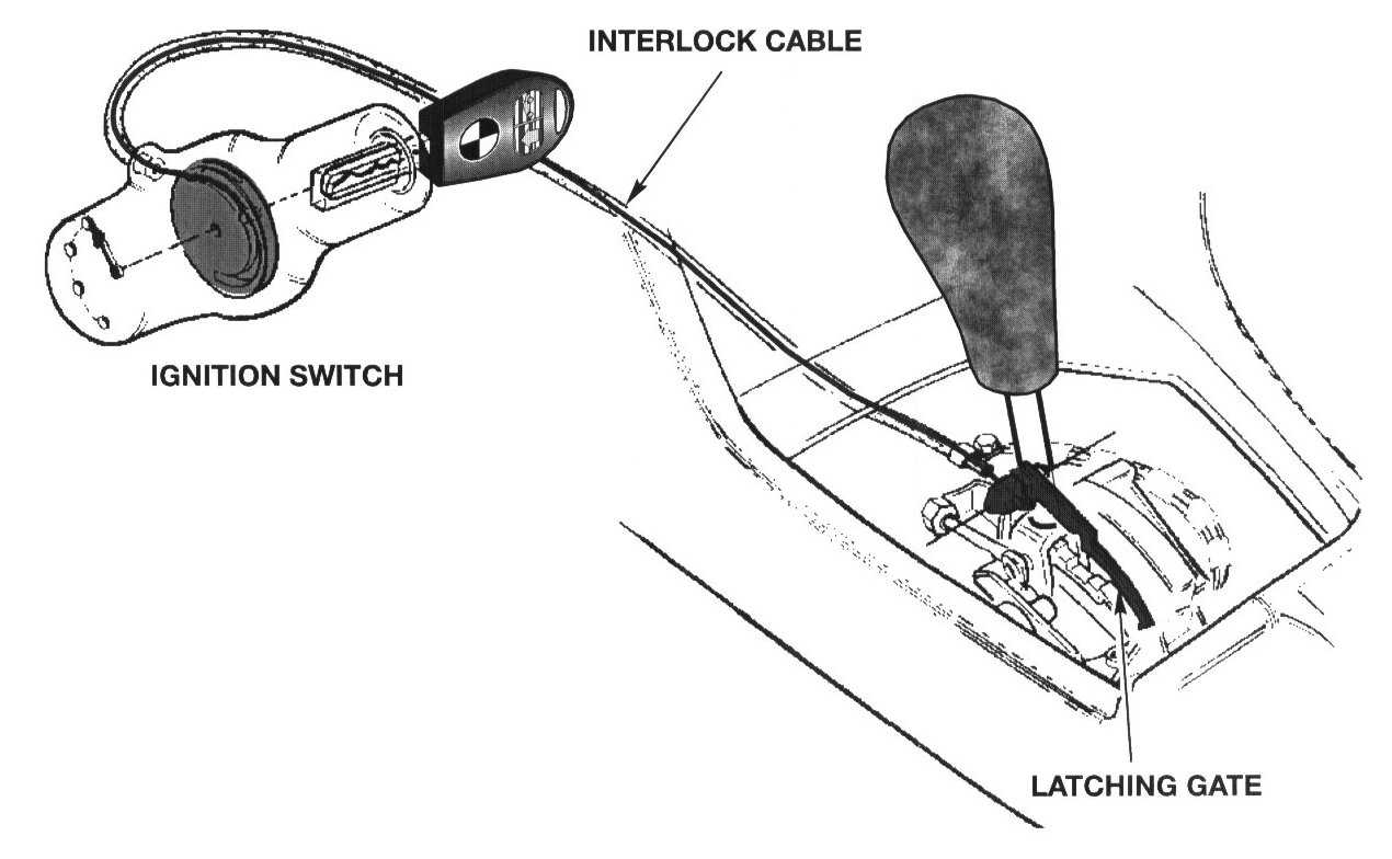 Since 1993, an additional safety feature has been added known as the ignition switch interlock. The system is a cable that is connected between the selector lever and ignition switch housing. The ignition switch cannot be turned to the lock position for removal until the transmission has been shifted into park.