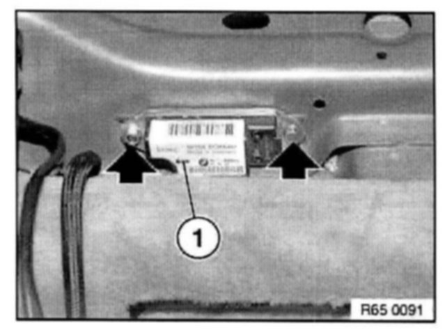 - Arrow (1) on impact sensor for side airbag must point to sill.