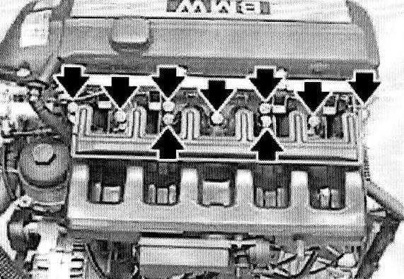 Note: Engines with air injection: Detach vacuum line on reverse side of intake air manifold.