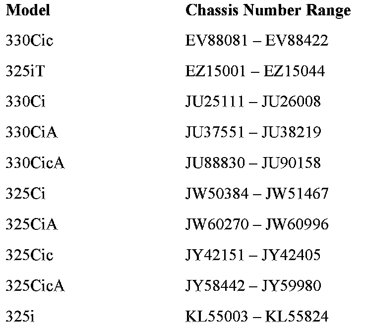 This Service Action involves E46 (3 Series) vehicles with option 522 (Bi-Xenon headlamps) which were produced from February 20, 2001 to November 8, 2001.