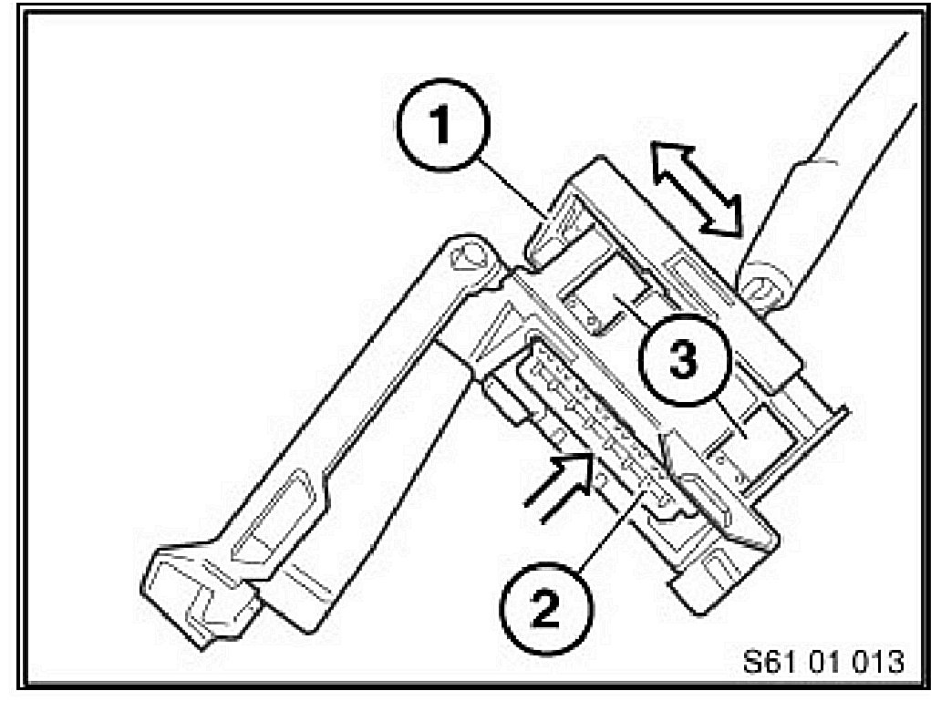^ Press the tabs (3) inwards and withdraw OBD housing from the trim.