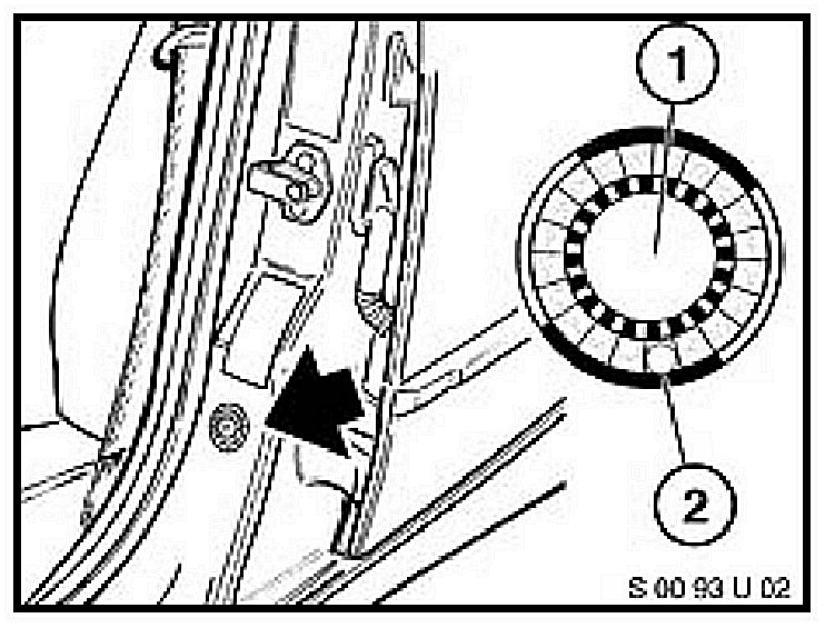 ^ Undo latch (1) and press out connector (2) in the direction of arrow.