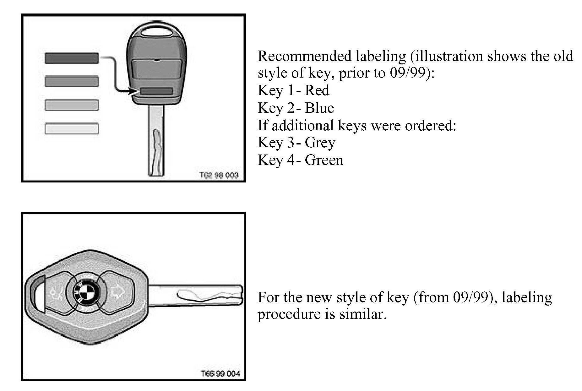 5. A separate programming procedure must be carried out for the second key. To identify keys, attach color label at the back of each key (labels are supplied with the vehicle).
