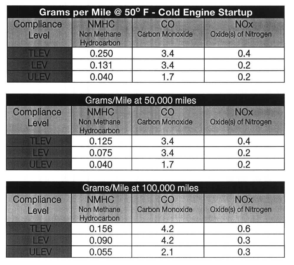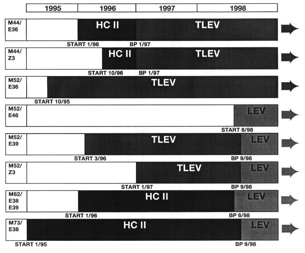 Prior to the National Low Emission Vehicle Program, the most stringent exhaust reduction compliancy is what is known internally within BMW as HO II. The benefit of exhaust emission reductions that the National Low Emission Vehicle Program provides compared with the HO II standard is as follows: