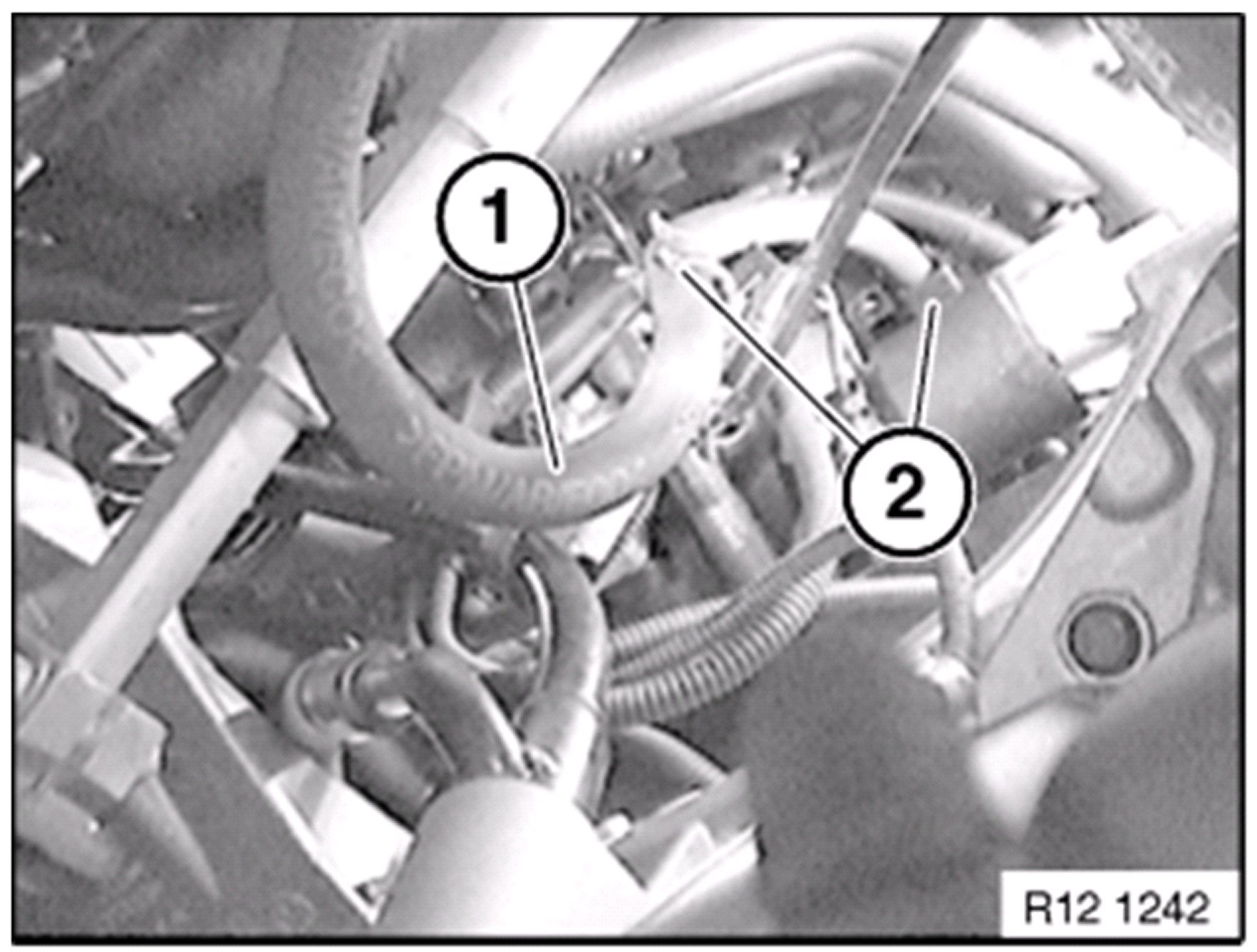 Remove fuel line ( 2 ) from holders ( 1 ).