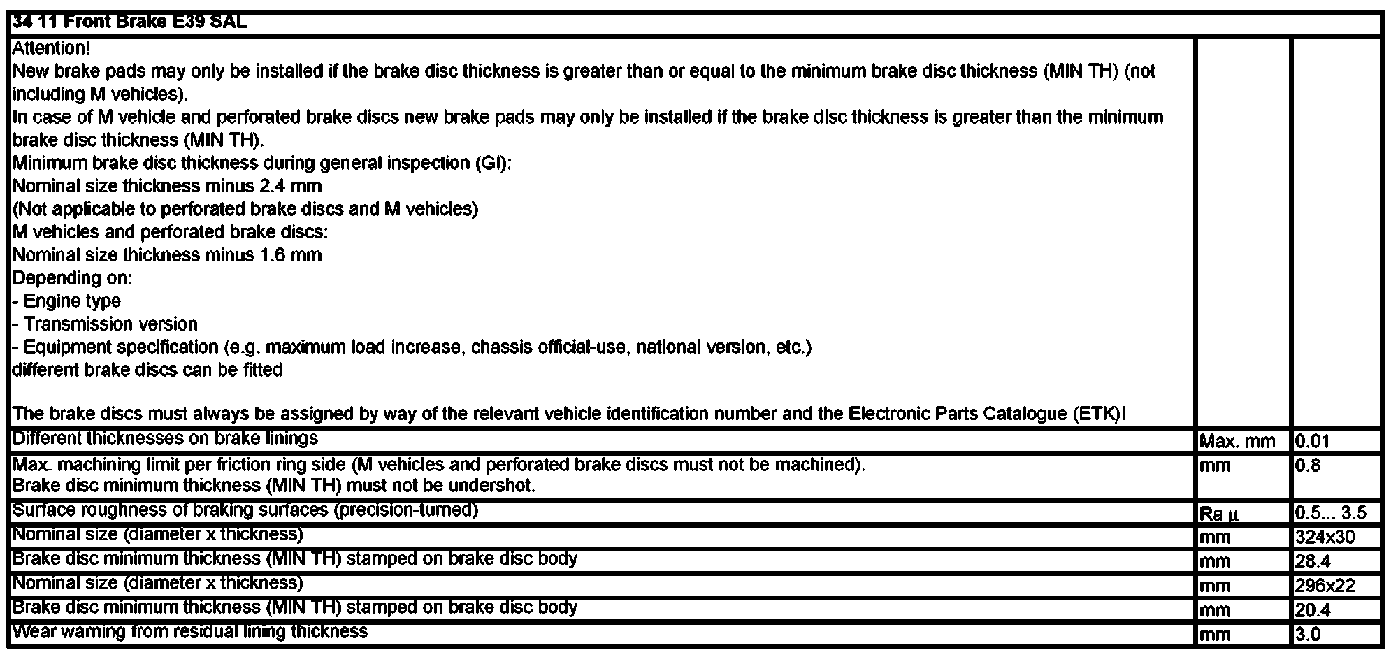 34 11 Front Brake E39 Sal: