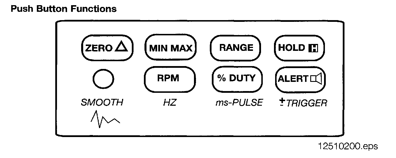 If meter is in MIN MAX Recording, RPM, Duty Cycle, Pulse Width or Hz, Touch Hold interrupts the function. The display is frozen, but recorded readings are not erased.