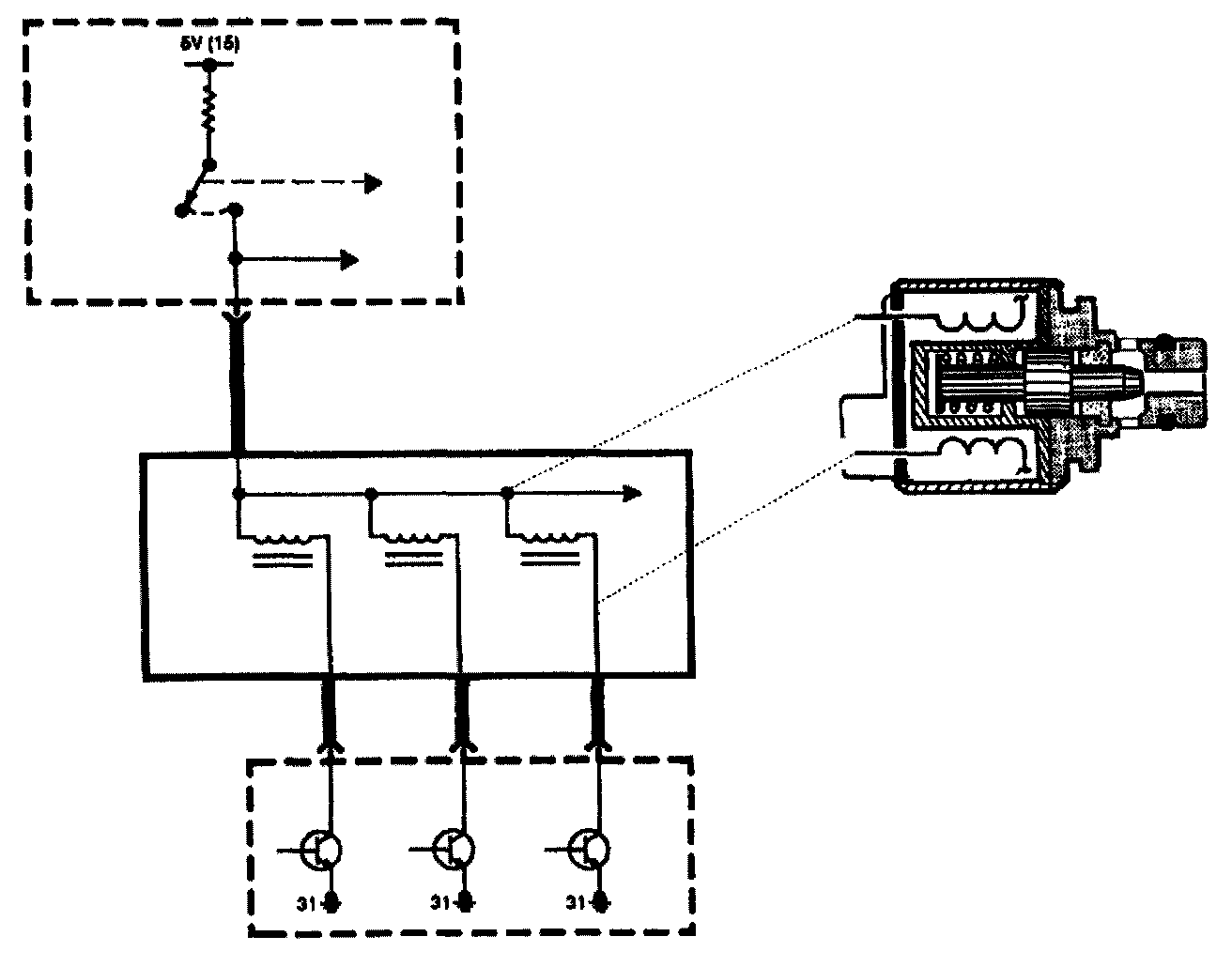 The valve is activated by the TCM by switching the circuit to ground. Torque converter lock-up is possible in 4th or 5th gear.
