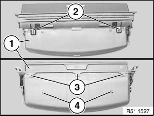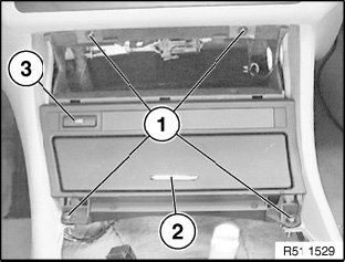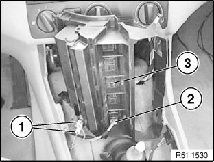 Disconnect plug connections (1) for cigarette lighter and (2) for ASC and remove carrier (3).
