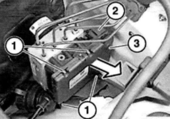 Release screws (1) and carefully remove control module (3).