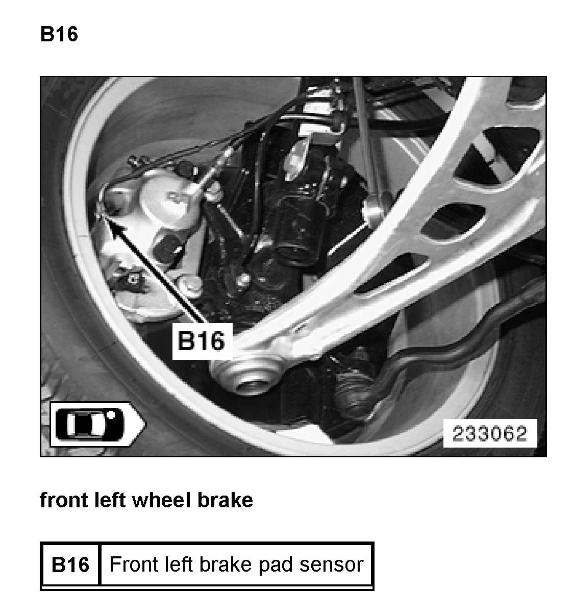 B16 Left Front Brake Pad Sensor