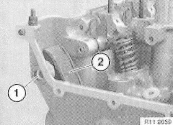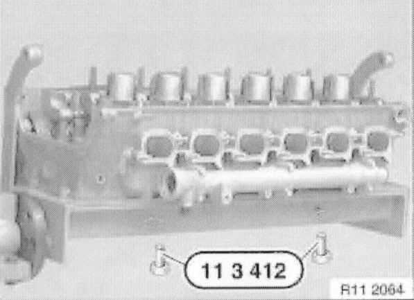Note: Secure cylinder head from below through locating board with special tool 11 3 412 in spark plug threads.