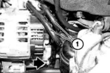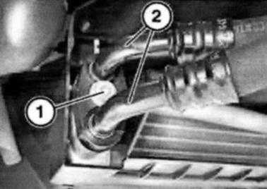 Release oil cooler line (1) on oil filter housing.