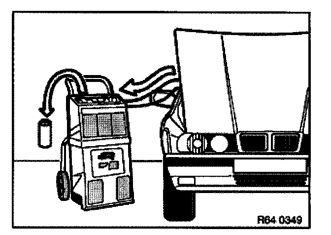 After installing the new compressor, it is essential before filling the A/C system to pour the same amount of the previously drawn off refrigerant oil into the system again, refer to Evacuating A/C system.