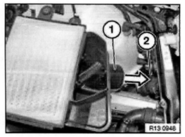 Rotate upper section of intake filter housing (4) towards top left. Detach intake hose from intake air manifold.