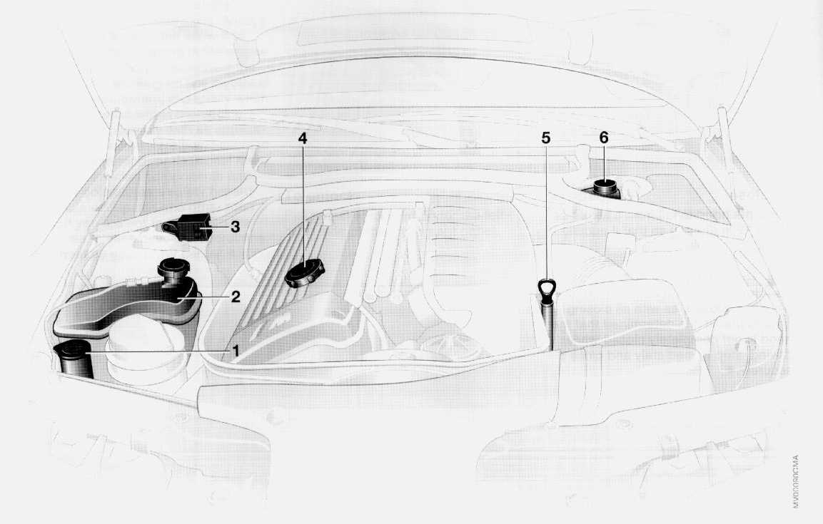 ENGINE COMPARTMENT:1 Filler neck for headlamp and windshield washer cleaning system