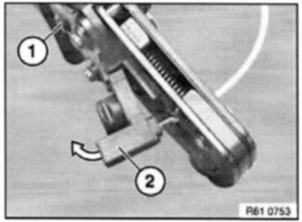 To crimp MQS contacts, use pliers 61 4 321 (1) in conjunction with crimping head 61 4 324 (2) from crimping set 61 4 320