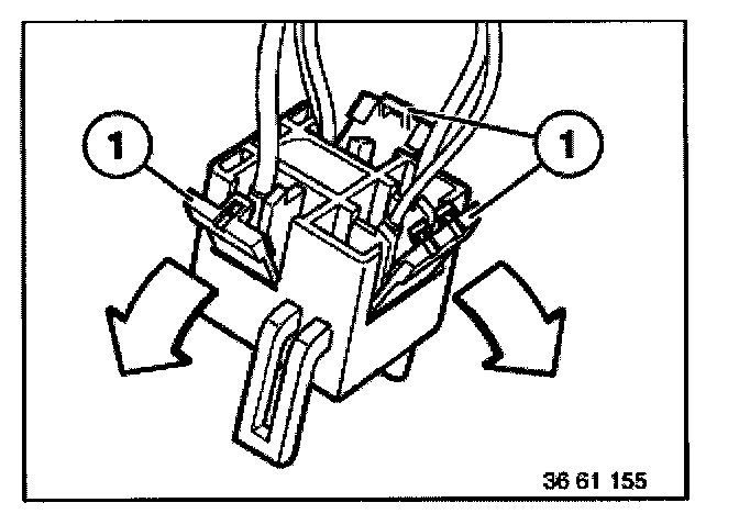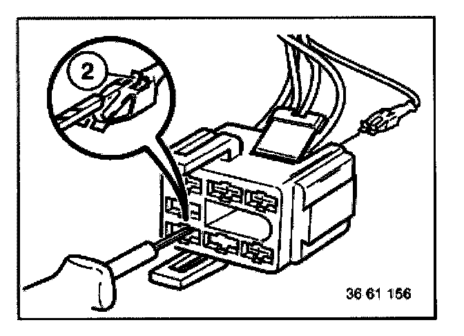 With special tool 61 1 136 or 61 1 137 (ejector), press back arrester hook (2) of appropriate contact and pull out cable.