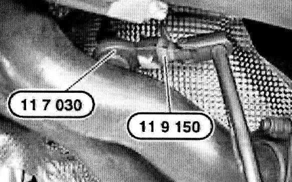 For final tightening of oxygen sensors, fit torque wrench and special tool (11 7 030 / 11 9 150) as illustrated.