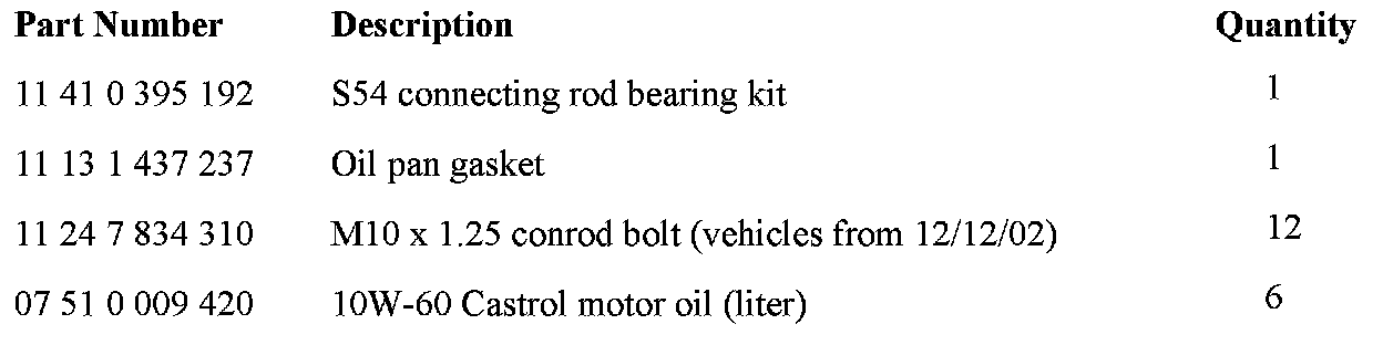 Orders for the S54 Connecting Rod Bearing Kit (P/N 11 41 0 395 192) will be VIN specific. Orders may be placed as a VOR or stock order. The VIN is to be placed in the "comment/text" field. It is recommended that VIN not be used as the P.O. number. This will prevent using the VIN again for subsequent VIN specific orders. Only orders with a VIN will be released. All other orders will be cancelled.