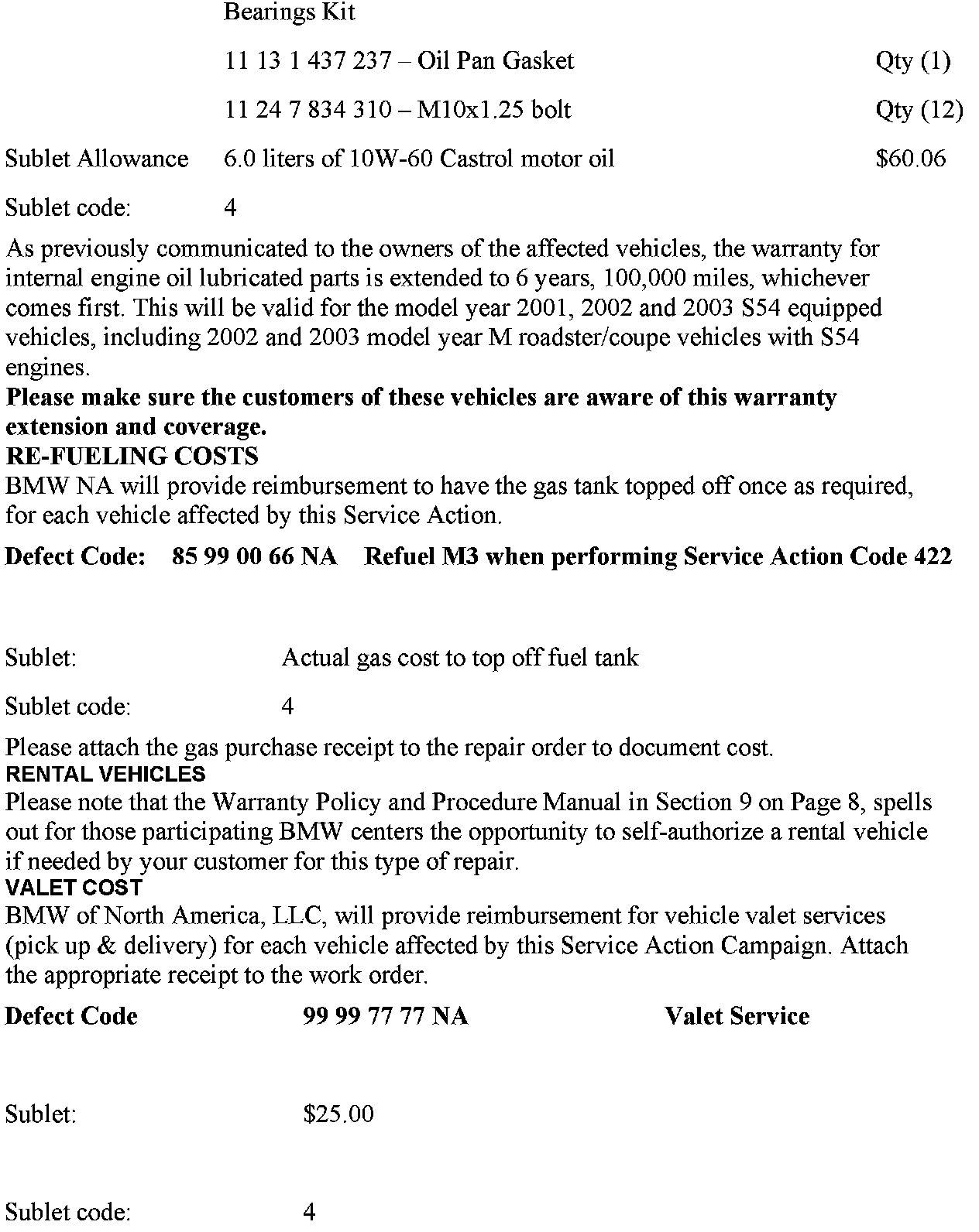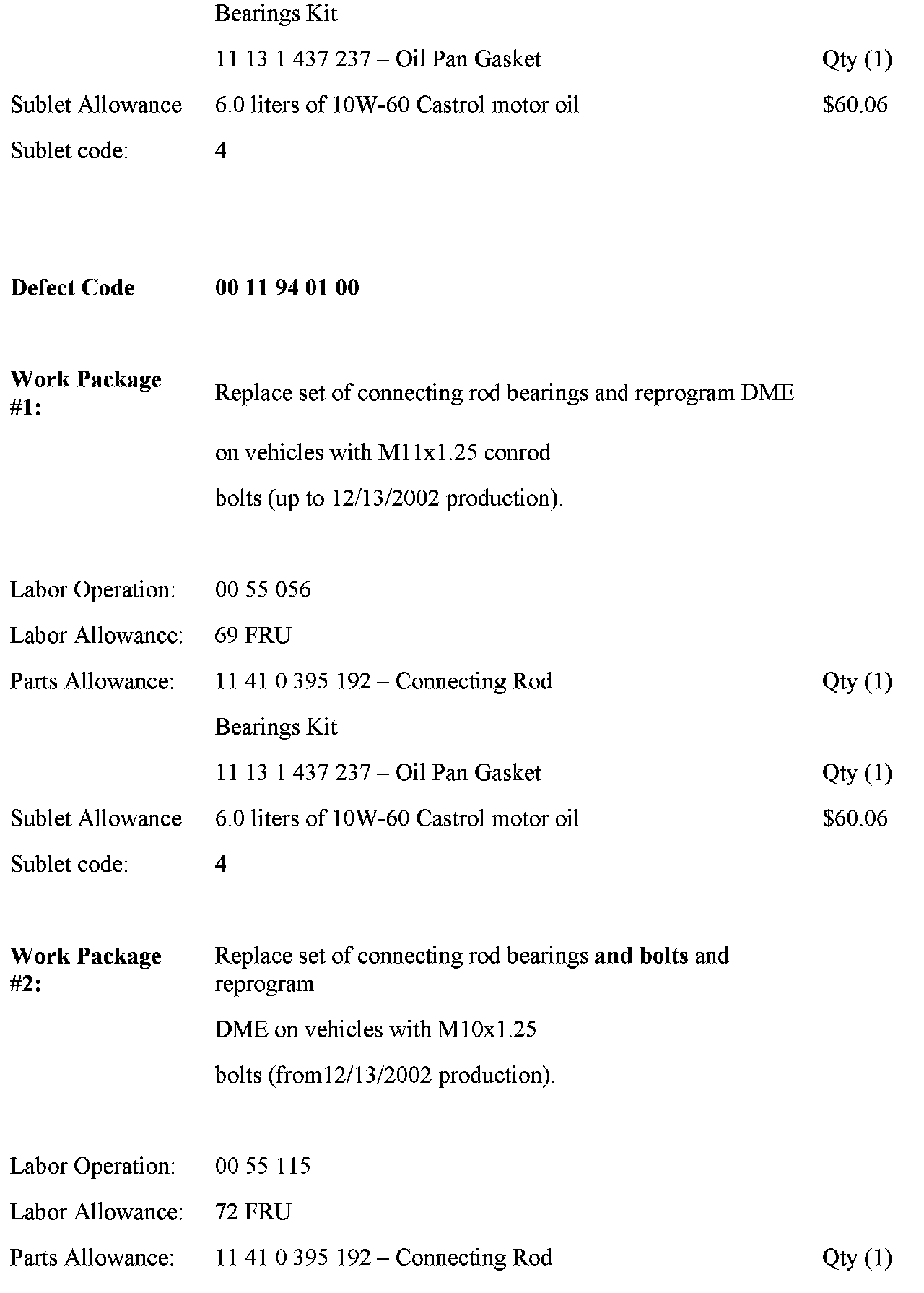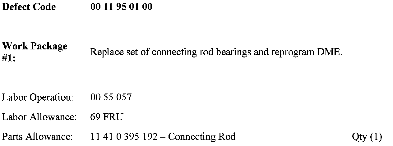 The M3 vehicles produced from October 2001 through February 2002, which already had the Connecting Rod Bearings/Oil Pump Campaign 356 (SIB 11 02 03) previously performed, are also affected by this Service Action.