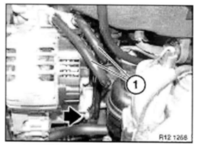 Lay oil lines to one side to open up access to screw connection of battery positive lead on alternator.