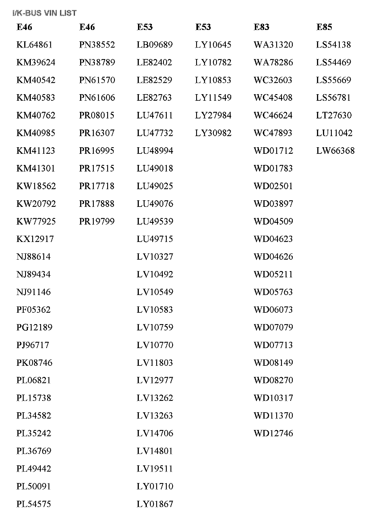 PROCEDURE FOR I/K-BUS VEHICLES (E.G. E46, E53, E83, E85)