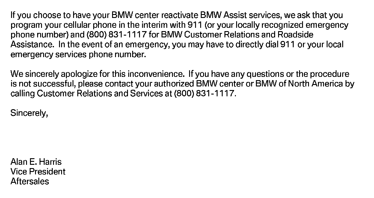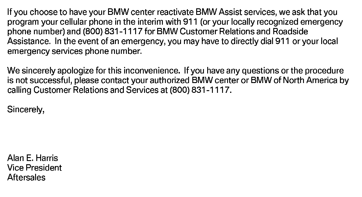 ^ If the customer is NOT an active BMW Assist services client, no further action is required.