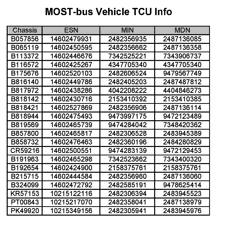 6. Check if the TCU's Electronic Serial Number (ESN) to confirm if it corresponds to the information listed on the attached file named "B840807_VIN_MIN_MDN_List".