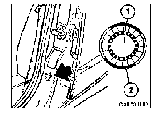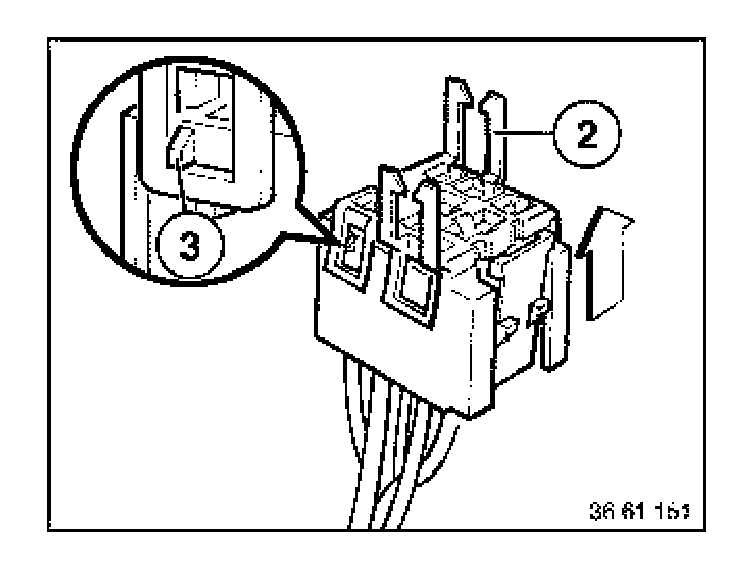 [NEW] Using special tool 61 1 153, pull relay carrier (1) in the direction of arrow until the retaining lugs are raised.