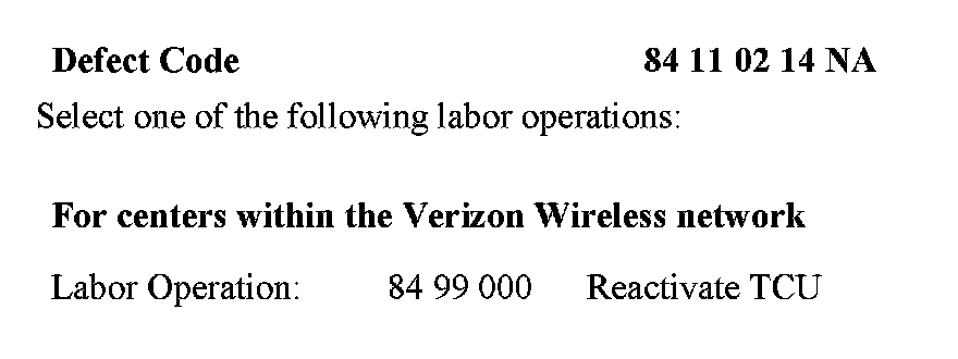6. The vehicle must be located within the Verizon Wireless network for the above reactivation procedure to work properly. See the attachment to SI B84 15 03 for list of centers located outside this network. If the vehicle is not in the Verizon Wireless network perform steps one and two and then follow these additional steps.