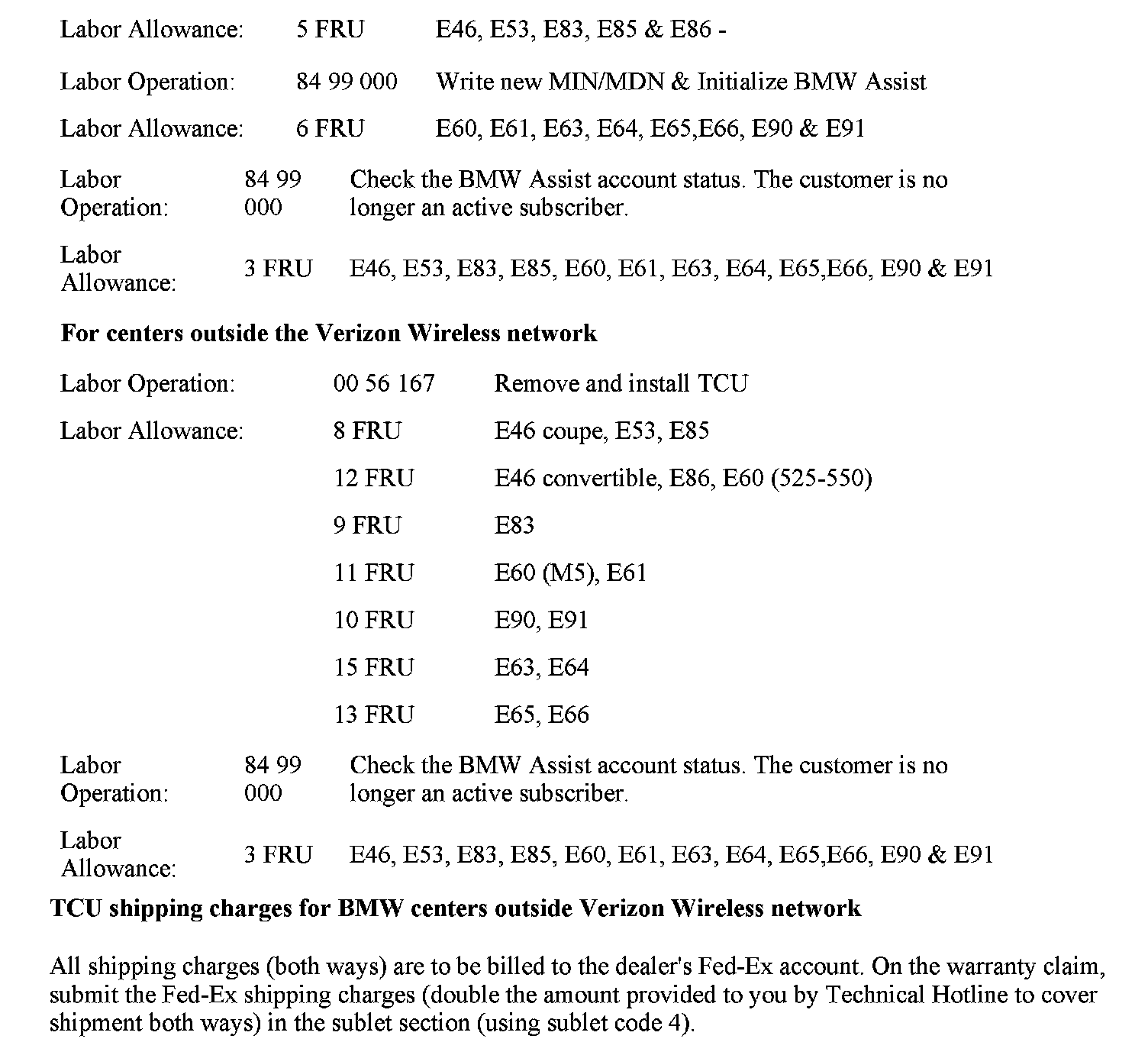^ Send via FedEx the TCU, BMW Assist TCU Reactivation Form with the new MIN/MDN numbers and a copy PuMA case to: