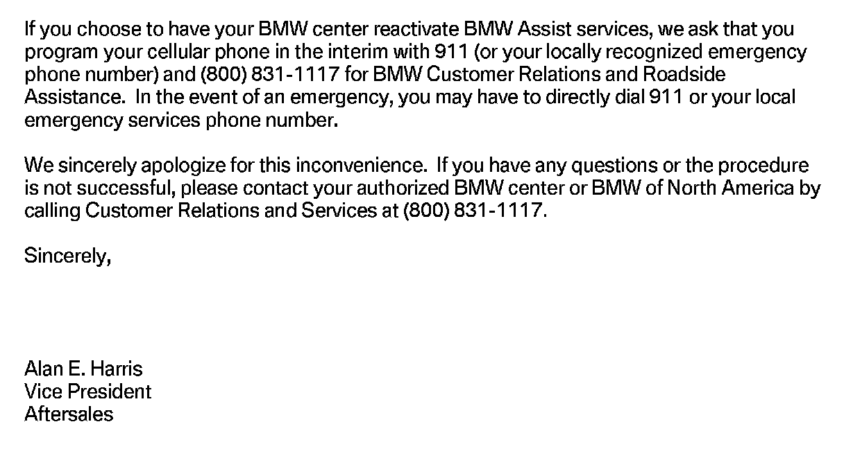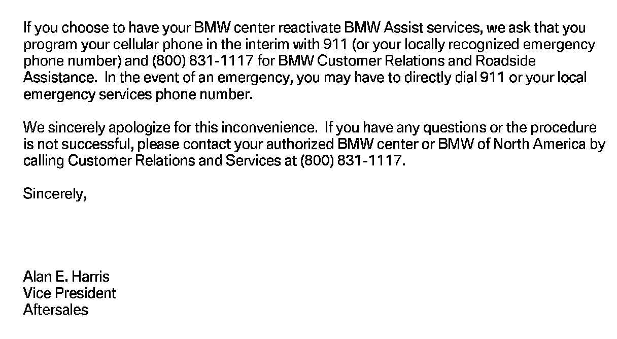 ^ If the customer is NOT an active BMW Assist services client, no further action is required.