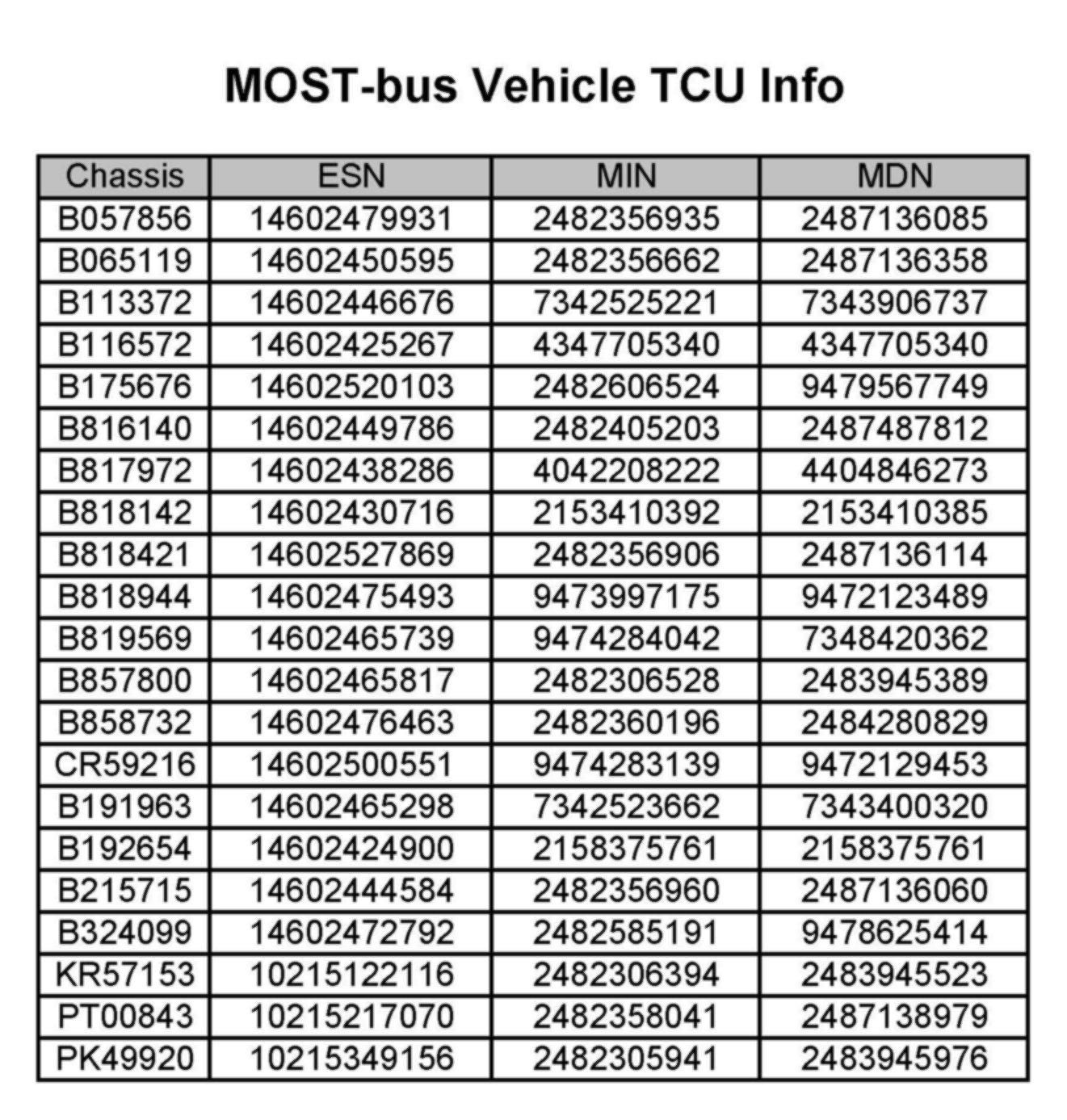 This may cause the manual and automatic emergency call and roadside call (BMW Assisttrade;) not to function. This Service Action reactivates the TCU by assigning a new Mobile Identification Number (MIN) and Mobile Device Number (MDN) to the TCU.