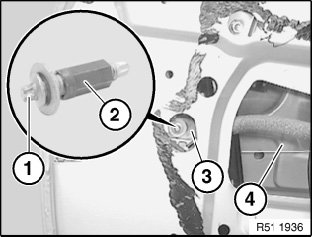 - Rubber ring (1) may be damaged during removal of door window glass.