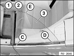 A Distance of seal (1) at rear to front door window edge at rear (X-direction).