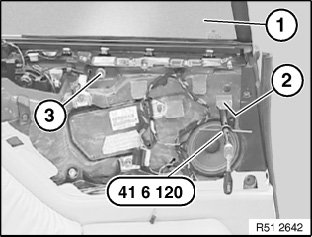 Slacken nuts (2) and (3) with special tool 41 6 120.