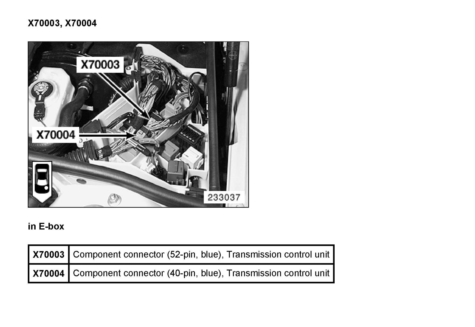 X70004 Connector, Control Module, Auto. Transmission.
