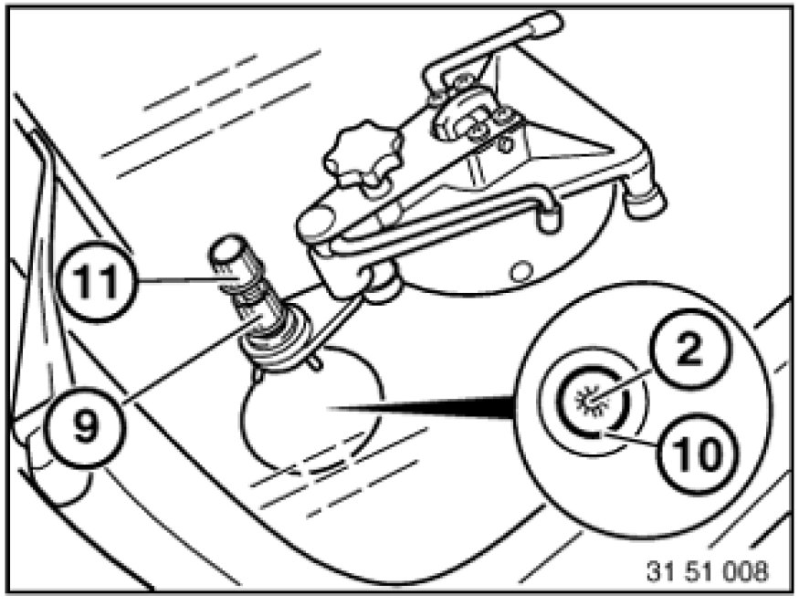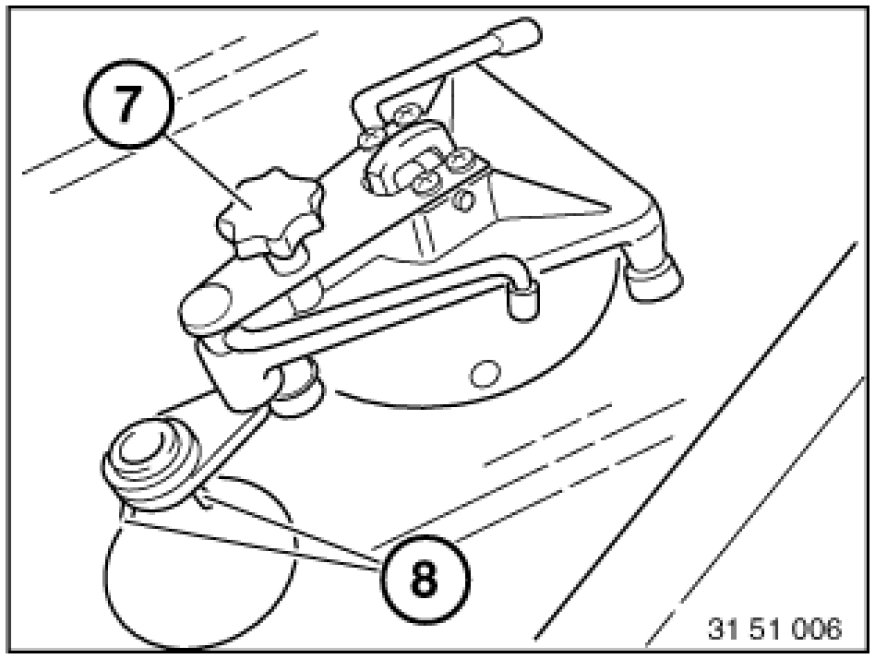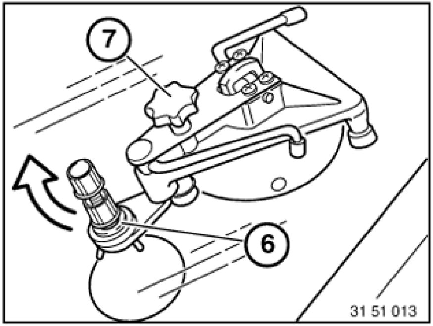 However, if air is still visible, swing sputnik (6) back over the impact spot and screw in knurled head screw (7) as far as before. Repeat steps starting with pressure/vacuum alternation.